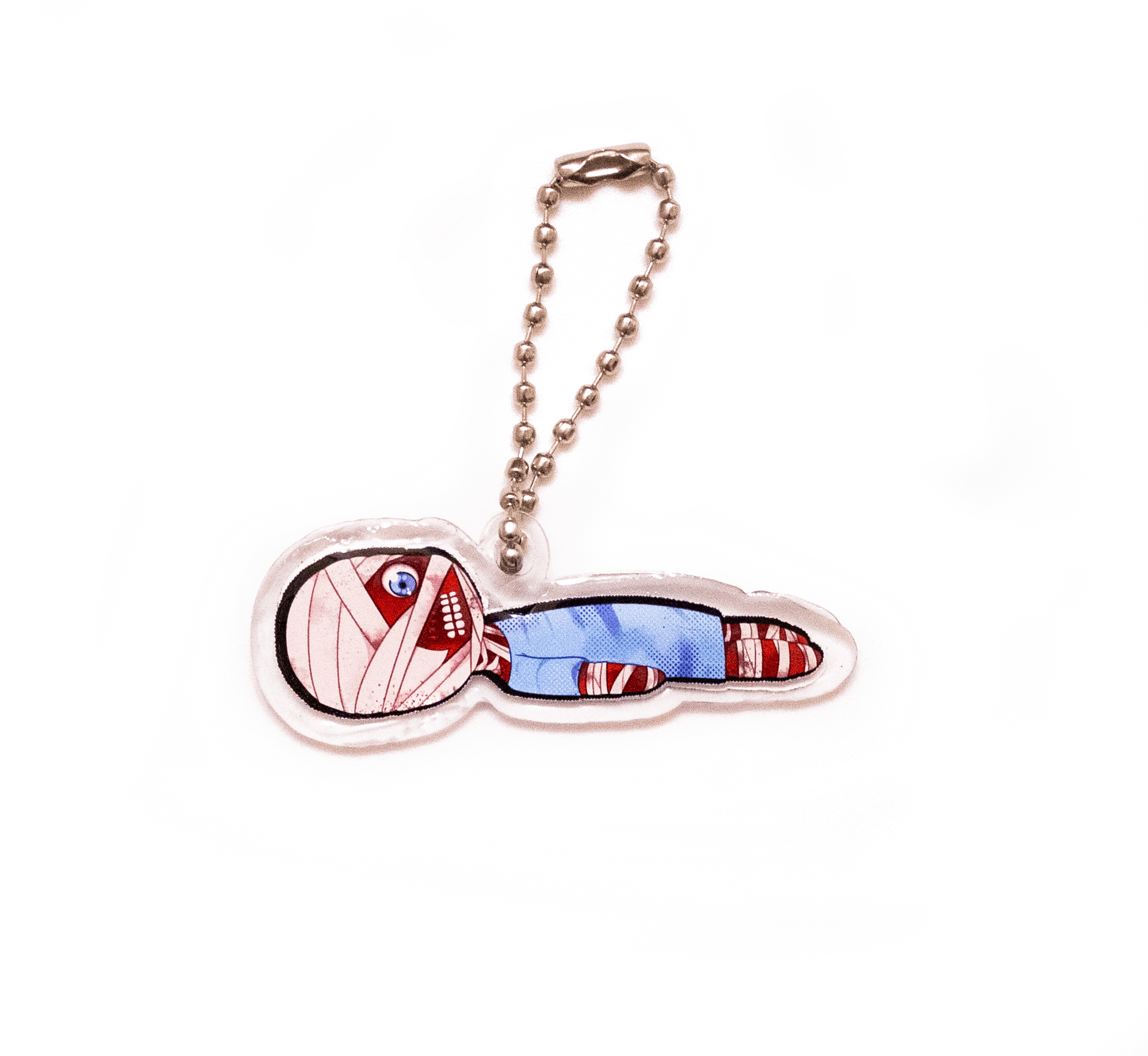 A homemade resin keychain of Anya, Daisuke, and Curly from Mouthwashing! Comes with silver chain clasp.